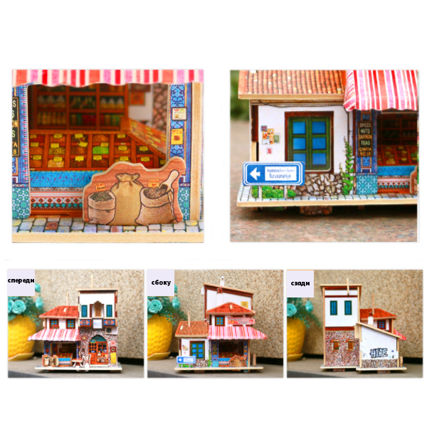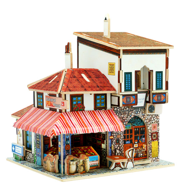Увеличить Деревянный 3D пазл Турецкий рынок Артикул: F142 Нет в наличии 428 Р В корзину Купить в 1 клик В избранное Из деталей конструктора можно собрать Турецкий рынок. На рынке выставлены лотки с фруктами, мешки со специями. На входе висит вывеска, на которой написано, что в продаже имеются орехи, специи, шафран. Возле входа стоит столик и стул. В хорошую погоду можно посидеть рядом.