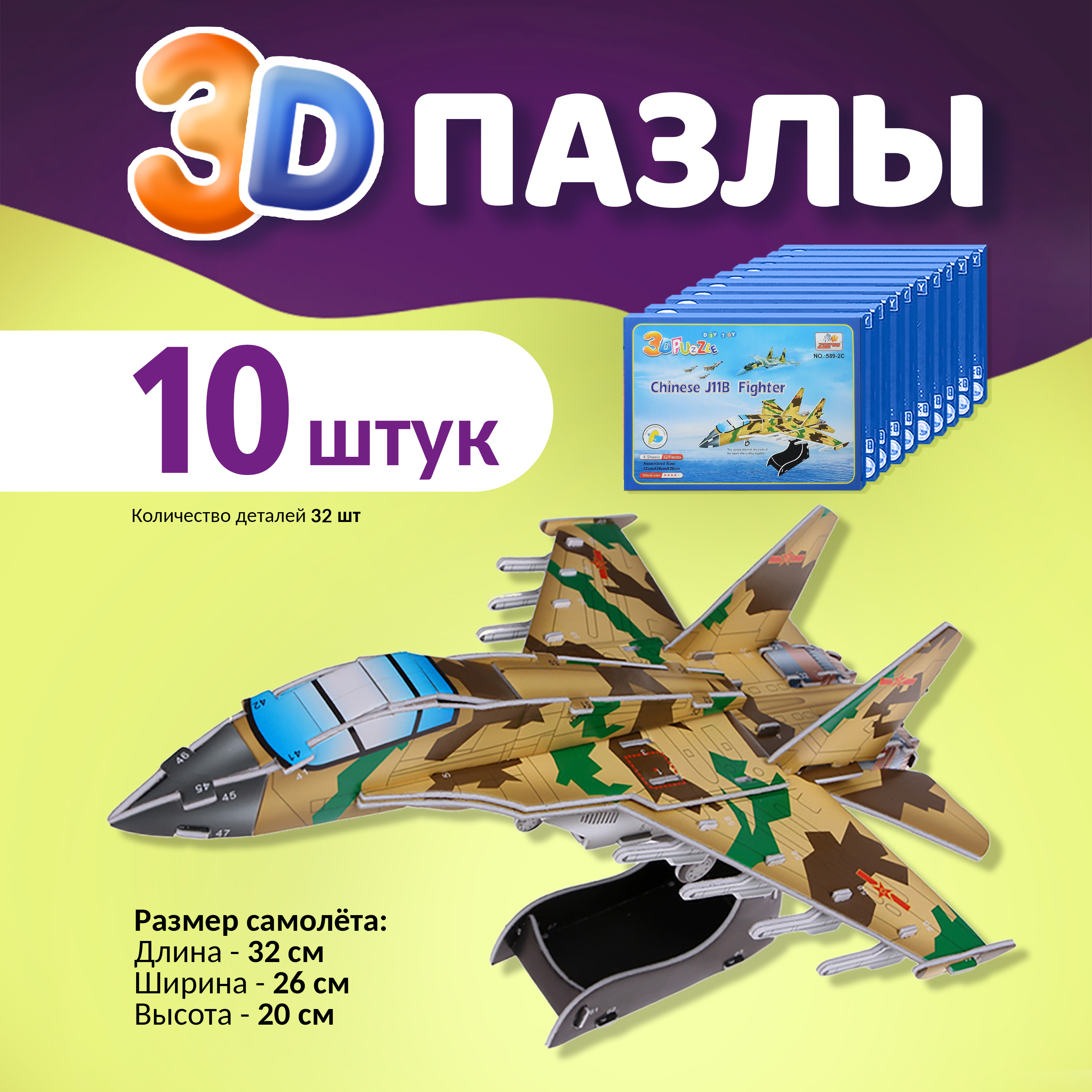 Увеличить 3D пазлы из пенокартона Военный самолет Артикул: 589-2C-10 Много Количество - + 840 Р В корзину Купить в 1 клик В избранное Из деталей пазла можно собрать реалистичную модель легкомоторного боевого самолета. Фюзеляж самолета имеет маскировочную окраску: четырехцветный камуфляж. Порядок сборки определяется маркировкой на деталях.
