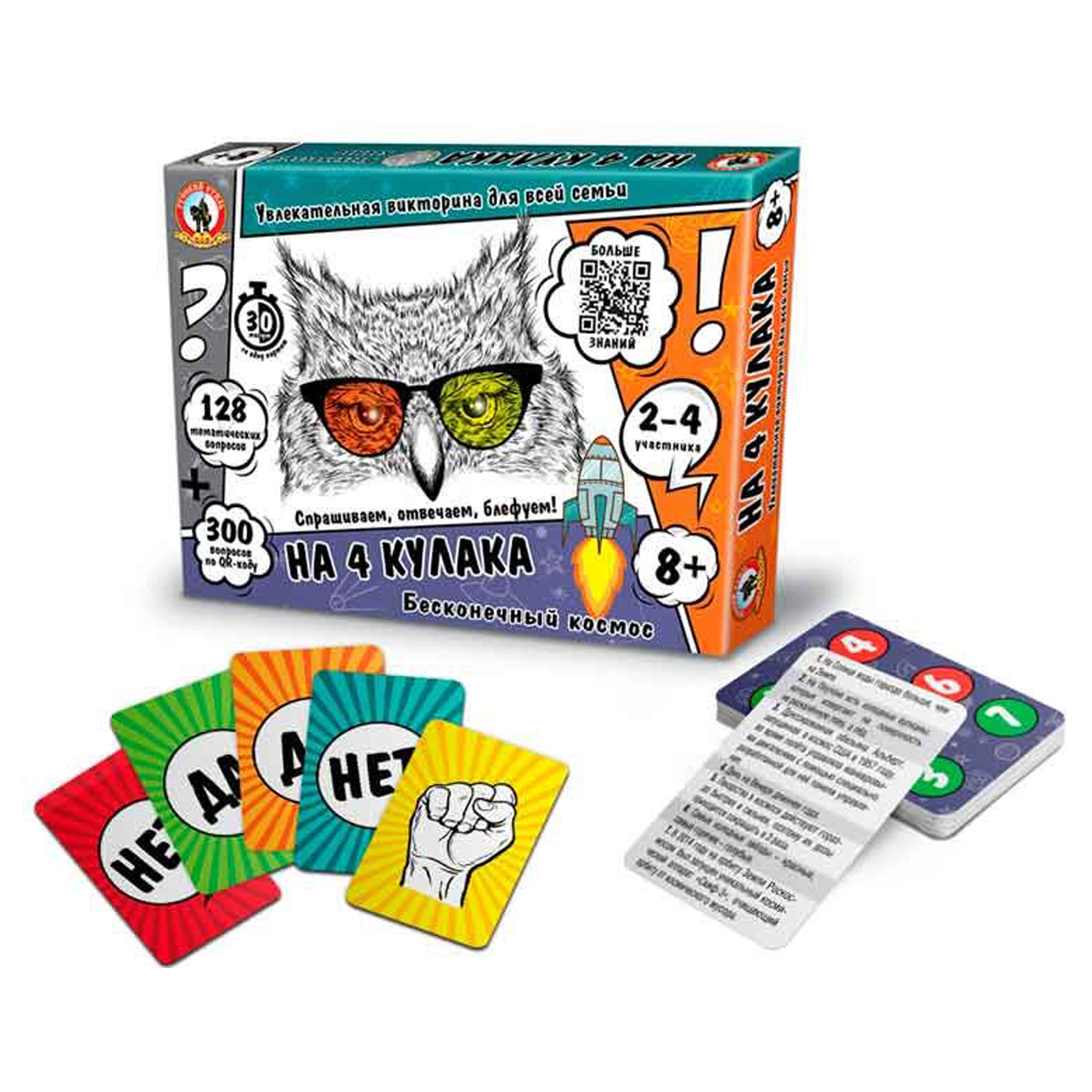 Увеличить Викторина на 4 кулака. Бесконечный космос Артикул: 2051 Нет в наличии 244 Р В корзину Купить в 1 клик В избранное Настольная игра Бесконечный космос - это викторина об известных фактах о космосе и Вселенной. Игра содержит правдивые и ложные факты о космосе, на который надо дать ответ "Да" или "Нет".